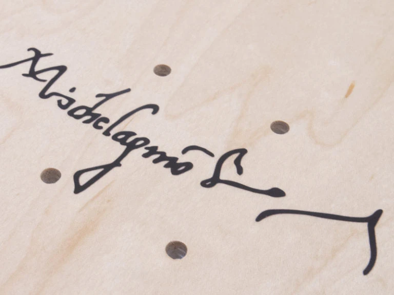 his exclusive limited edition of 100 Michelangelo Skateboard Triptych featuring one of the Italian High-Renaissance Cinquecento artist’s most notorious work the Creation of Adam Panel, found on the Sistine Chapel Ceiling Fresco (1511-1512). One of the two central panels of the Sistine Chapel ceiling fresco, The Creation of Adam , represents the moment when God and Adam confront each other in a primordial unformed landscape of which Adam is still a material part, heavy as earth. The Lord transcends the earth, wrapped in a billowing cloud of drapery and borne up by His powers. Representing the Old Testament biblical passage in Genesis 1:26 (NIV, Then God said, “Let us make mankind in our image, in our likeness, so that they may rule over the fish in the sea and the birds in the sky, over the livestock and all the wild animals, and over all the creatures that move along the ground.”), Michelangelo depicts the moment where life leaps to Adam like a spark from the extended and mighty hand of God. As God reaches out to Adam, the viewer’s eye travels from right to left, but Adam’s extended left arm leads the eye back to the right, along with the Lord’s arm, shoulders and left arm to his left forefinger, which points to the Christ Child’s face. Through this compositional arrangement, Michelangelo vividly exemplifies the Christian doctrinal parallel between Adam, the first man, and cause of the fall of humanity, and the subsequent redemption from sin through the sacrifice of Christ referred in Scripture as “The New Adam.”