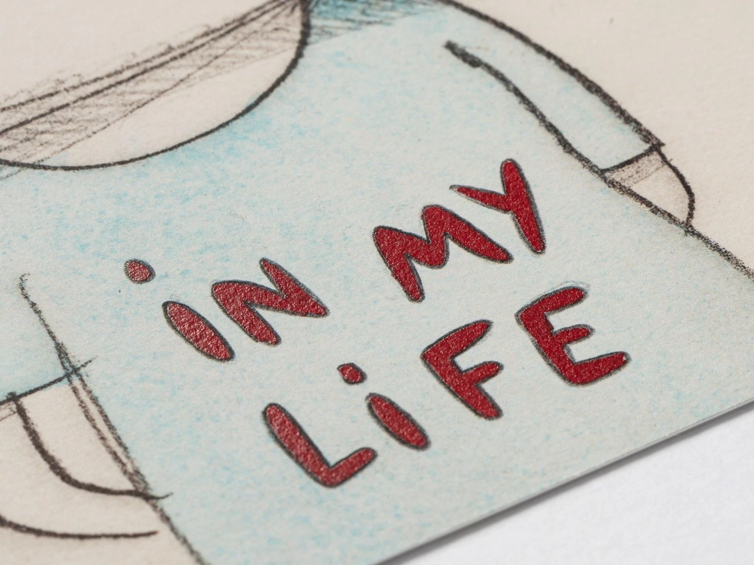 Hybrid UV flatbed pigment print with red silkscreen details, varnishes, and embossment on Somerset Tub Sized Radiant White 410gsm fine art paper, with cut edges.