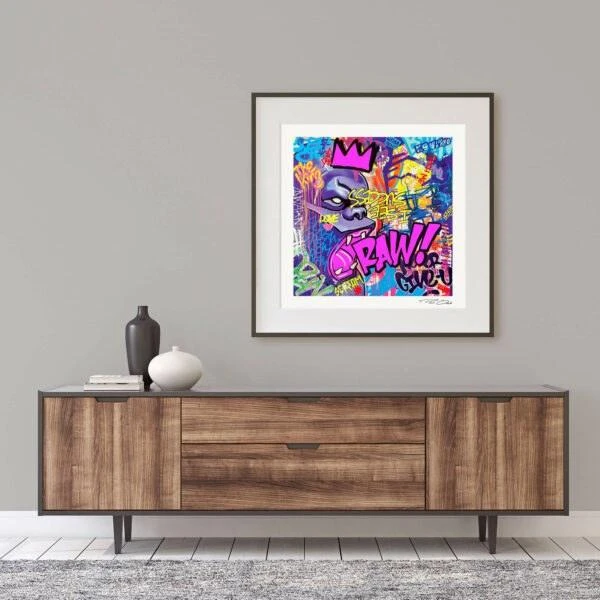 Au format standard (50×50), la reproduction fine art « RAW ! Pink » de fabrication française et artisanale, viendra sublimer votre intérieur.