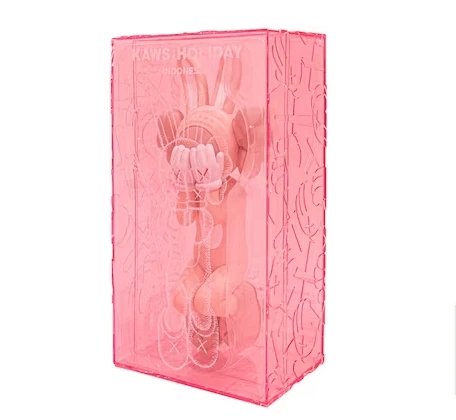 Brian Donnelly, better known as KAWS, spent the first year of his career as an animator for Disney. After leaving in 1997, KAWS took inspiration from the company’s signature cartoon, Mickey Mouse, to create his own set of characters that he named “Companions.” With gloved hands and X’s for eyes, “Companions” first appeared in KAWS’s graffiti works across New York City in the late 1990s. By the end of the decade, the street artist created his first three-dimensional version, and his characters have since taken on a variety of colors, sizes, and poses. In 2017, his four-foot-tall Seated Companion (2011) broke the auction record for the series, selling for over $400,000. However, many of KAWS’s “Companions” are considerably more affordable, such as his vinyl toys produced in collaboration with esteemed manufacturers including Bounty Hunter, Bape, Medicom, and his own brand OriginalFake, which was active between 2006 and 2013.